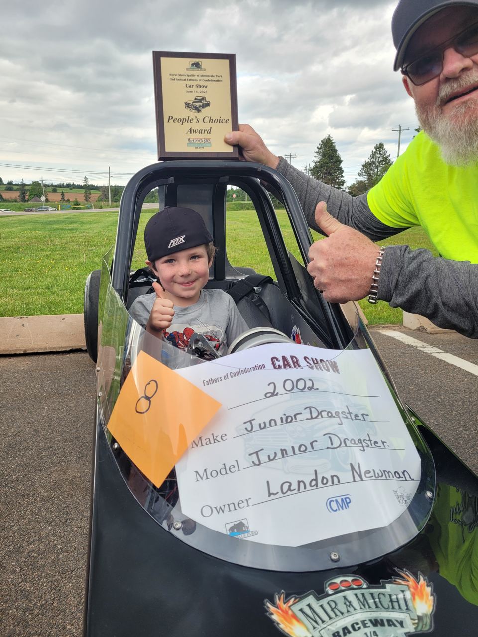 People’s Choice –sponsored by MacKinnon Bros. Service Centre went to Landon Newman ( #8) Kids race car, 2002 Junior Dragster