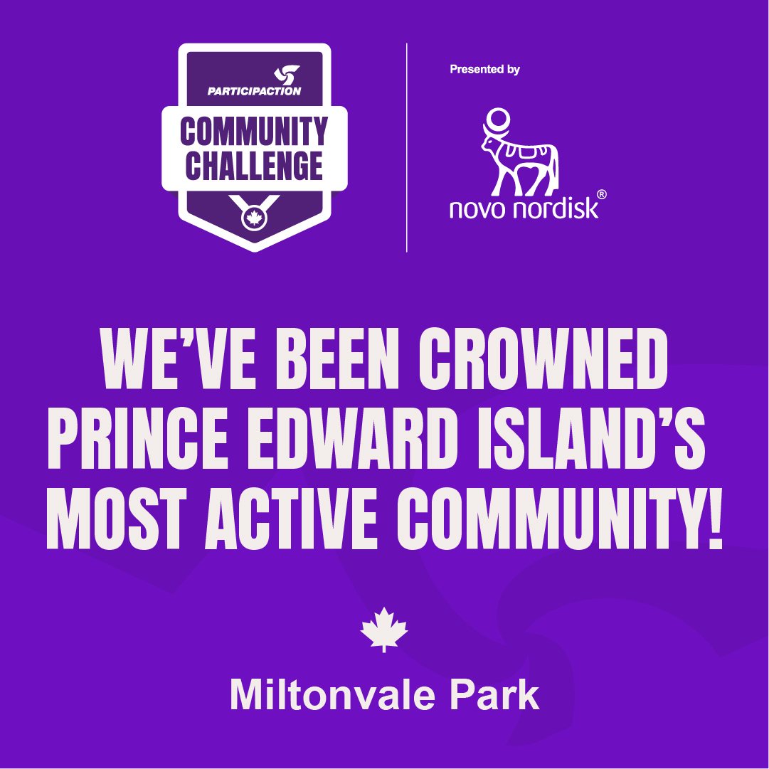 Thanks to residents and neighbours who moved throughout June to help Miltonvale Park be crowned the most active Community in PEI in 2025 and win $15,000!